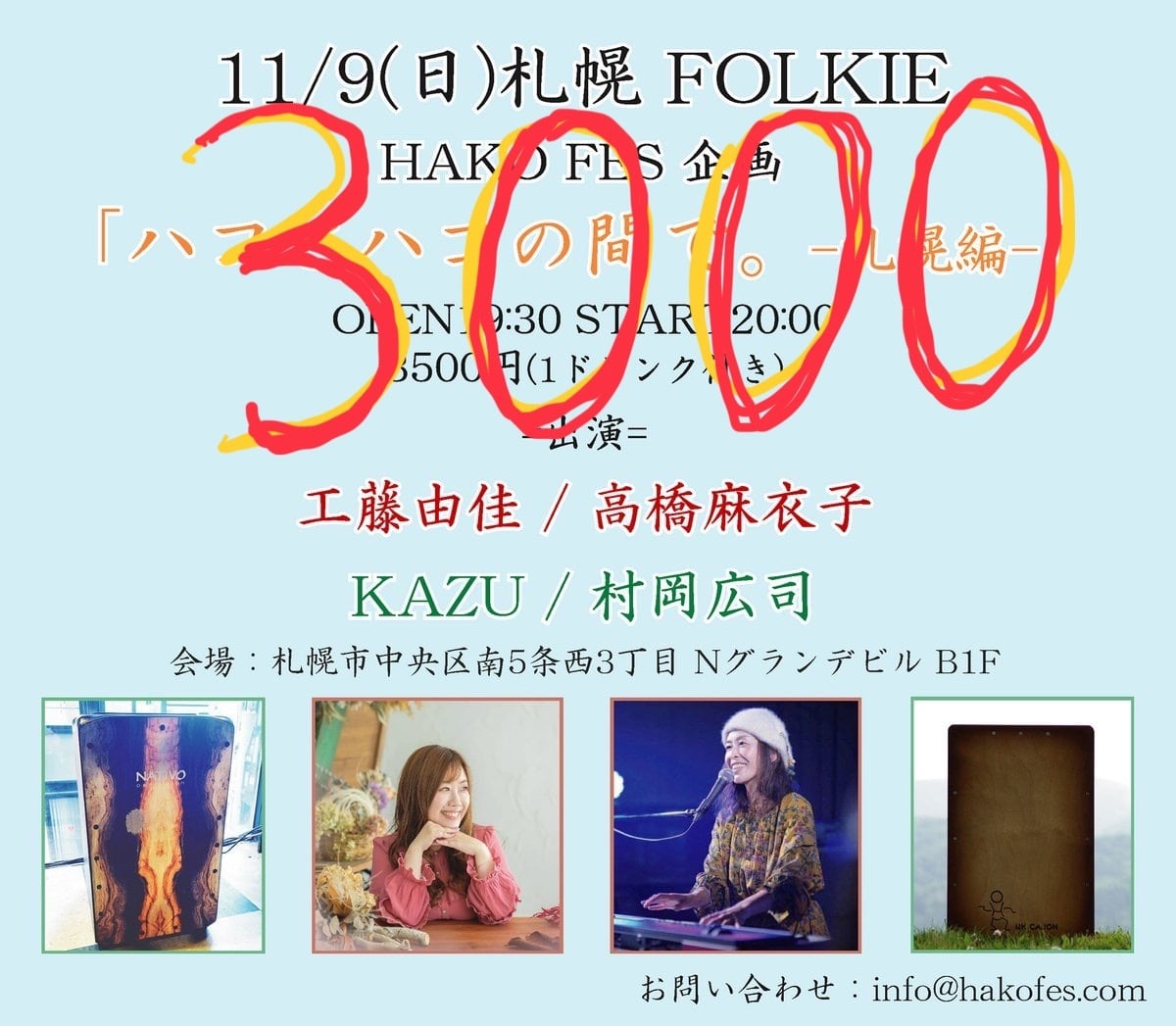【配信チャージ3000円】11/9「ハコとハコの間で。-札幌編-」 / ※購入時に備考欄に目当ての出演者を記載してください