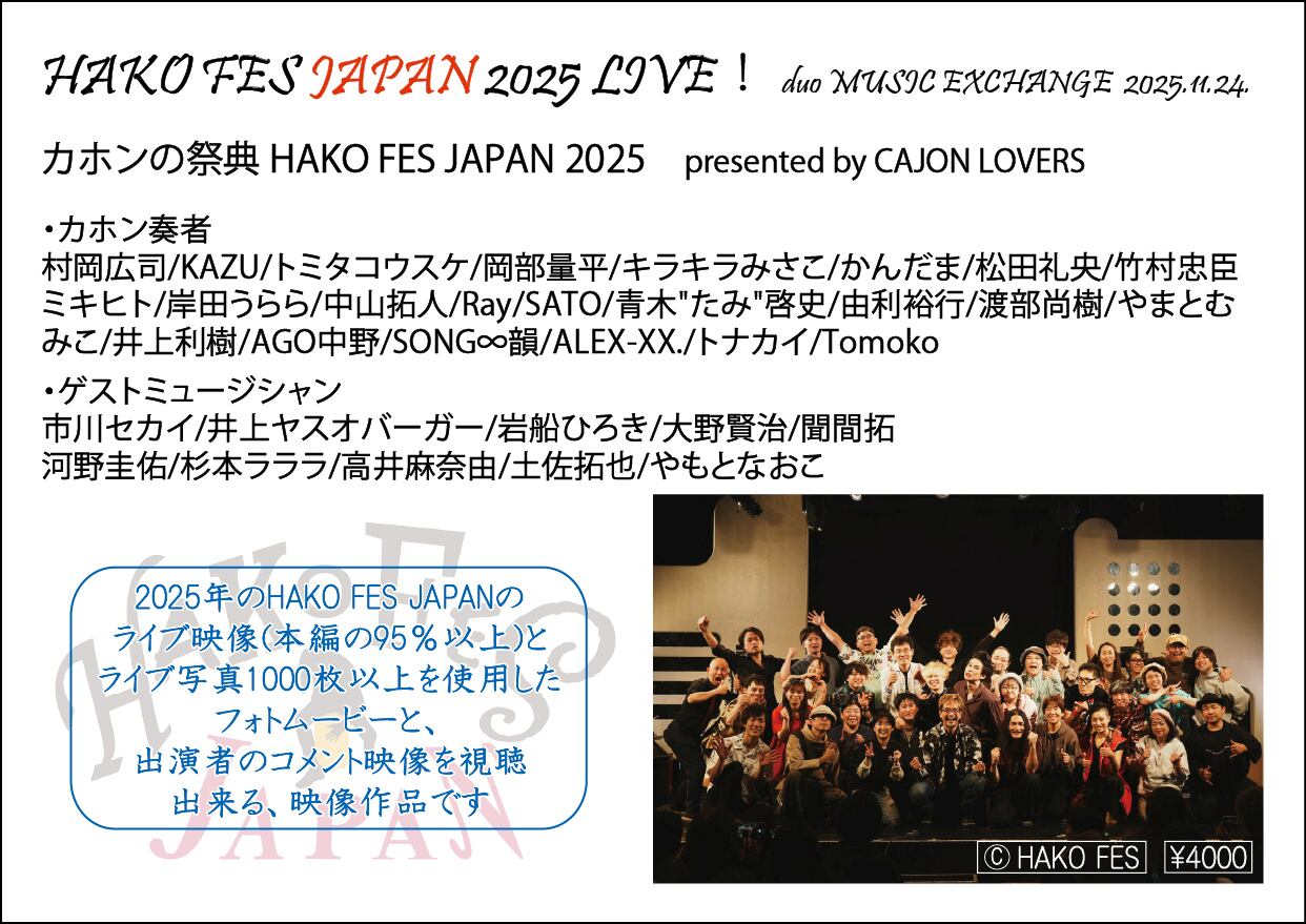★ライブ映像作品【HAKO FES JAPAN 2025 LIVE!】@渋谷duo MUSIC EXCHANGE ( 無期限 映像視聴作品 ) ※2026年1月中旬~末に発送予定です