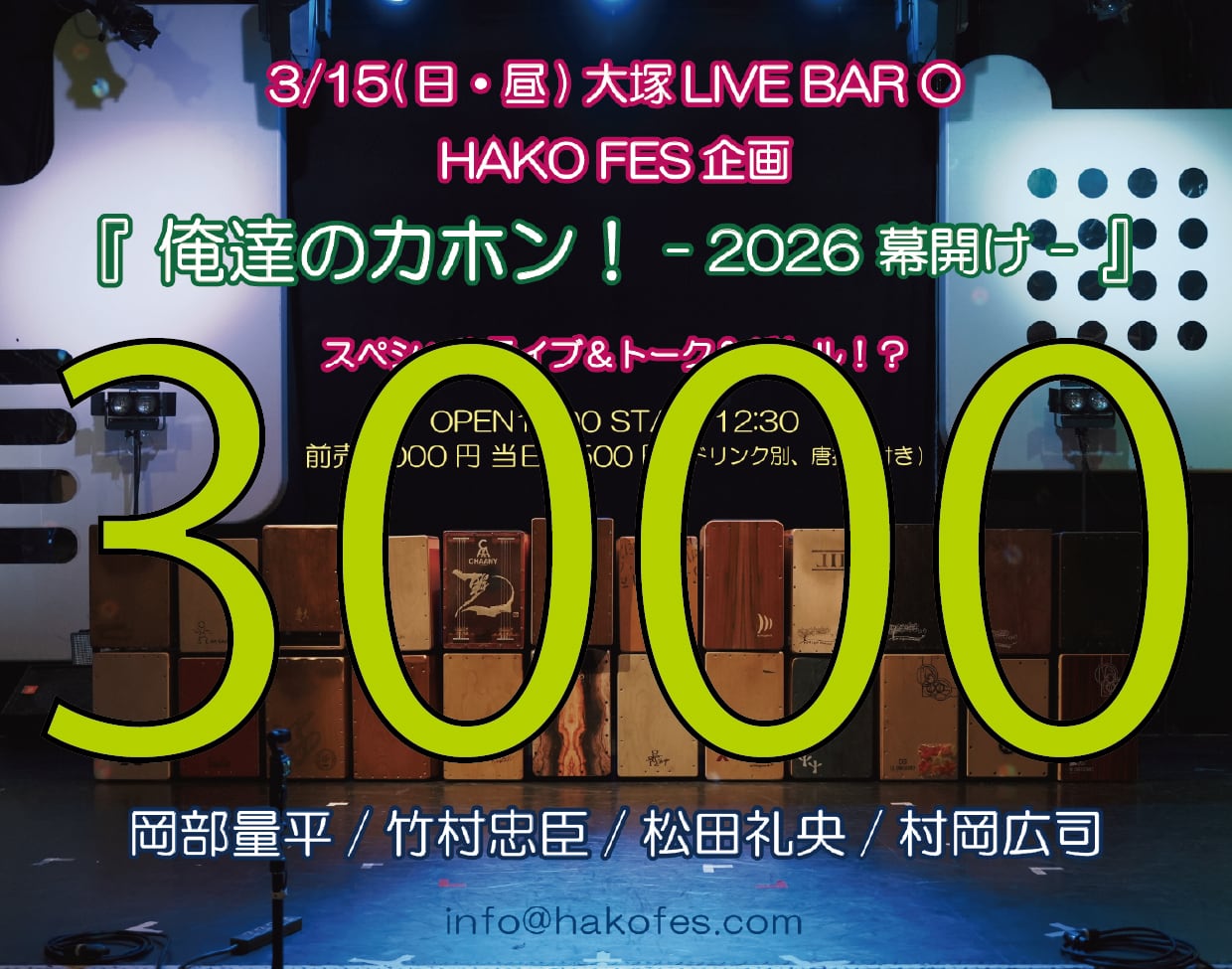 【配信チャージ3000円】3/15(日・昼)『 俺達のカホン!2026 幕開け 』